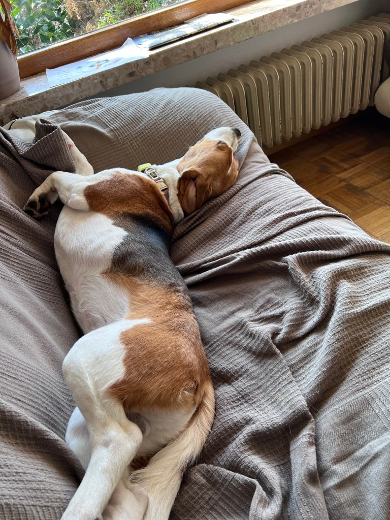 Mein Lieblingsplatz ist übrigens die Couch im Wohnzimmer. Da kann man sich super gut hinlegen und es riecht ganz toll nach Frauli.