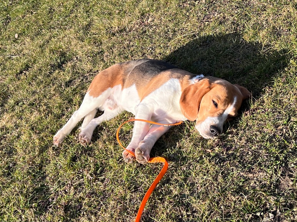 In der Früh geht Frauli jetzt immer mit mir aus dem Garten raus. „Gassi gehen“ sagt sie dazu. Diese Leine am Halsband schränkt mich zwar ganz schön ein aber dafür kann ich beim Gassi gehen super viel schnüffeln.