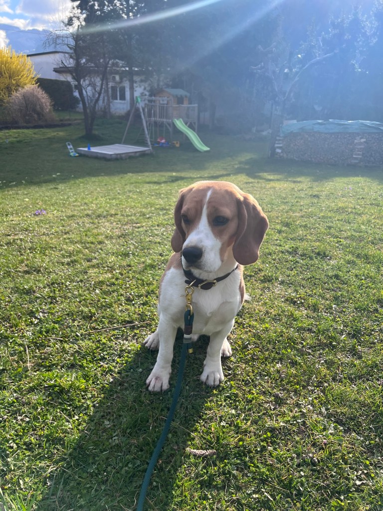 Frauli sagt ich hab brav gelernt. Sitz und Platz kann ich ausgezeichnet. Wenn es ruhig ist im Garten bleib ich auch schon ein wenig liegen wenn Lena mit mir Bleib übt. Meistens komme ich schnell angesaust wenn Frauchen mich ruft. Wenn sich viel tut dann kann ich aber noch nicht auf Frauli hören. Besonders schwer tue ich mir wenn Herrli daneben ist.