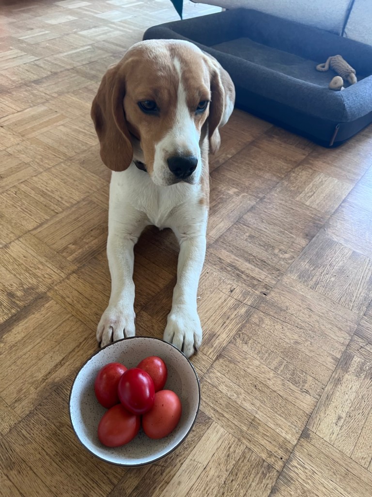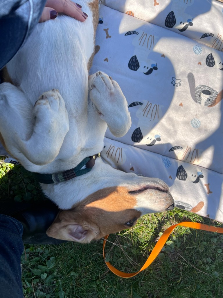 Herrli geht alle paar Tage mit mir Laufen. Da laufe ich sehr brav locker an der Leine mit. Aber sonst mag ich noch nicht wirklich mit Herrli kommen. Ich belle auch immer noch wenn er ins Haus kommt oder im Garten wieder etwas arbeitet. Wenn auch nicht mehr so viel wie in den vergangenen Wochen.