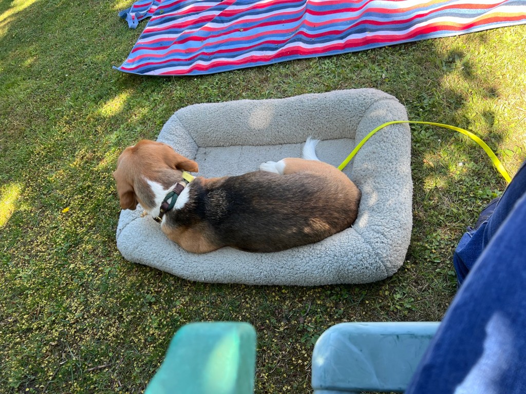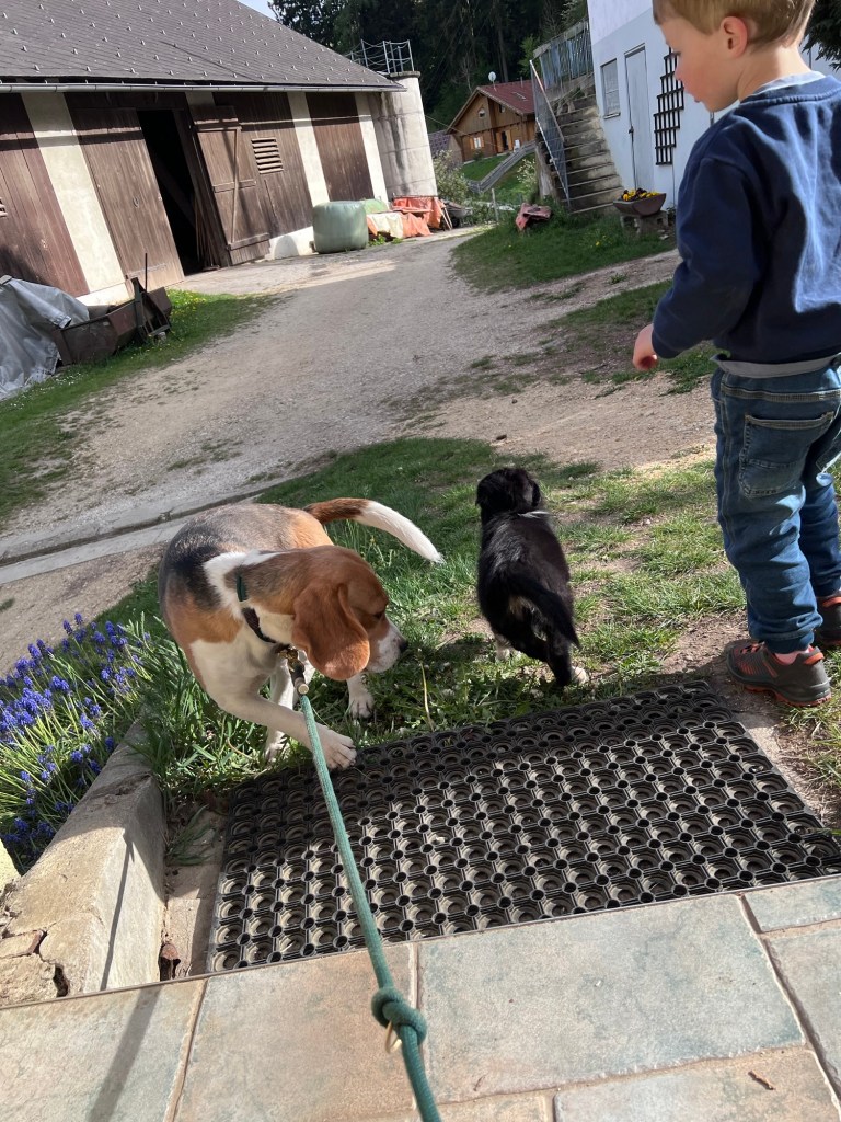 Immerhin gibt es hier viel spannendes zu schnüffeln und es sind mehr andere Hunde unterwegs wenn wir spazieren sind als daheim. Oma und Opa sagen die ganze Zeit, das ich sooo brav und ruhig bin.