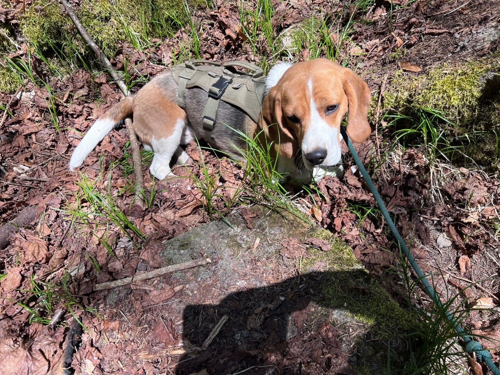 Heute waren wir auch schon eine kleine Runde wandern. Wir sind den Erlebnisweg Moorwald gegangen. War sehr fein dort: schnüffeln, lange Leine, Wasser, schnüffeln, schnüffeln, schnüffeln… nur das Autofahren find ich immer noch blöd. Das neue Geschirr ist gar nicht so doof. Da zieht nichts mehr am Hals und Lena ist auch weniger nervös seit wir es haben. Sie ist auch ganz stolz weil ich es so brav anziehe. Aber für Leckerli tu ich ja eh fast alles, sofern ich nicht zu aufgeregt bin.