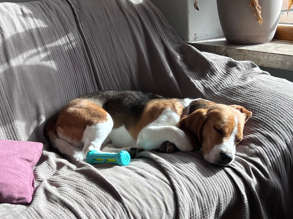 Seit Februar 2026 wohne ich bei meiner neuen Familie in Frantschach im Lavanttal. Der Umzug war ganz schön aufregend. Als Waldhund habe ich so ein Familienleben nämlich noch nicht gekannt. Mein Frauchen habe ich gleich ins Herz geschlossen, sie war ja auch diejenige die mich abgeholt hat. Dann gibt es da noch Herrchen, da hat es länger gedauert bis ich vertrauen gefasst habe, und zwei kleine Zweibeiner. Es ist immer irgendwie was los bei uns im Haus.